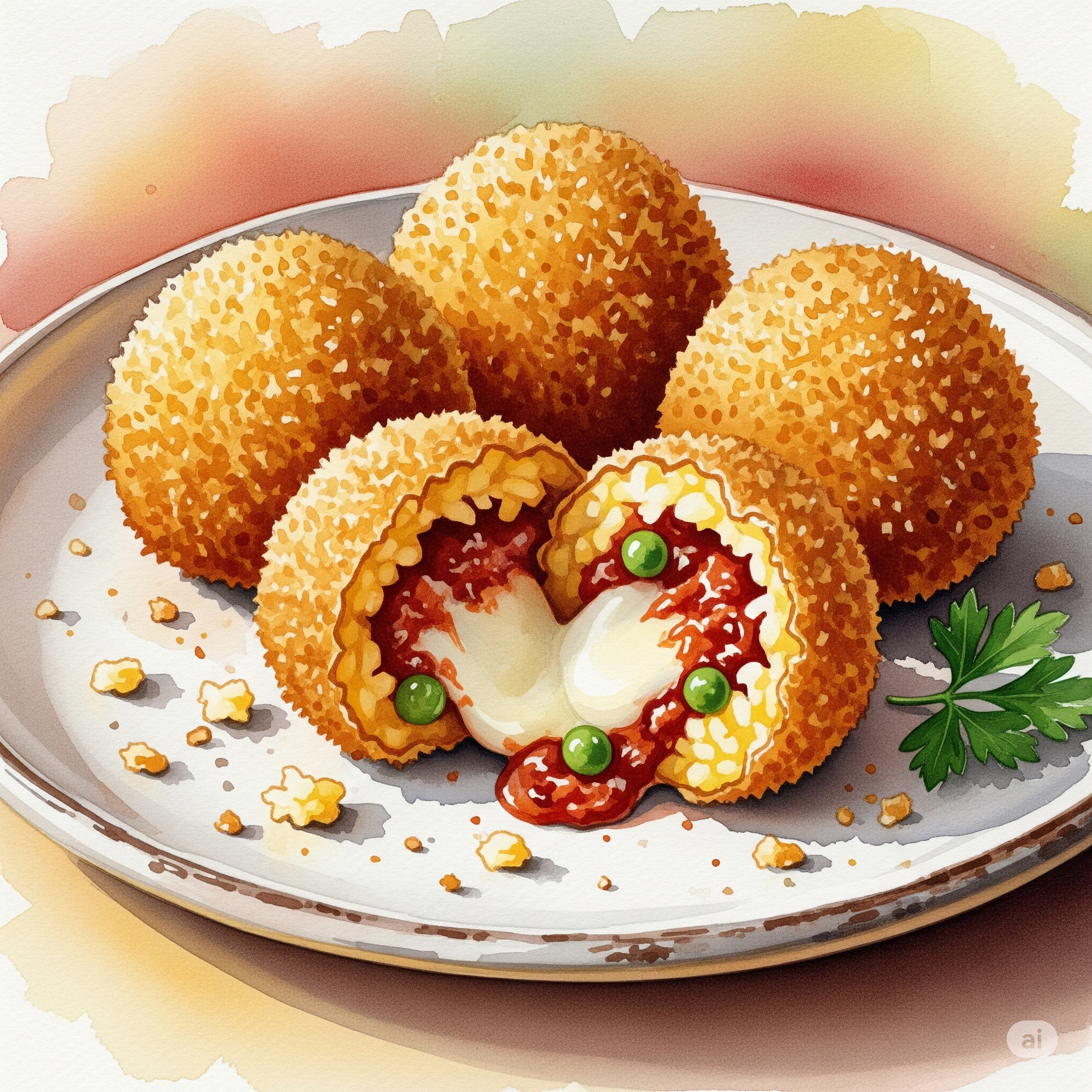 Fried rice balls with ragù or mozzarella, found at local cafés.