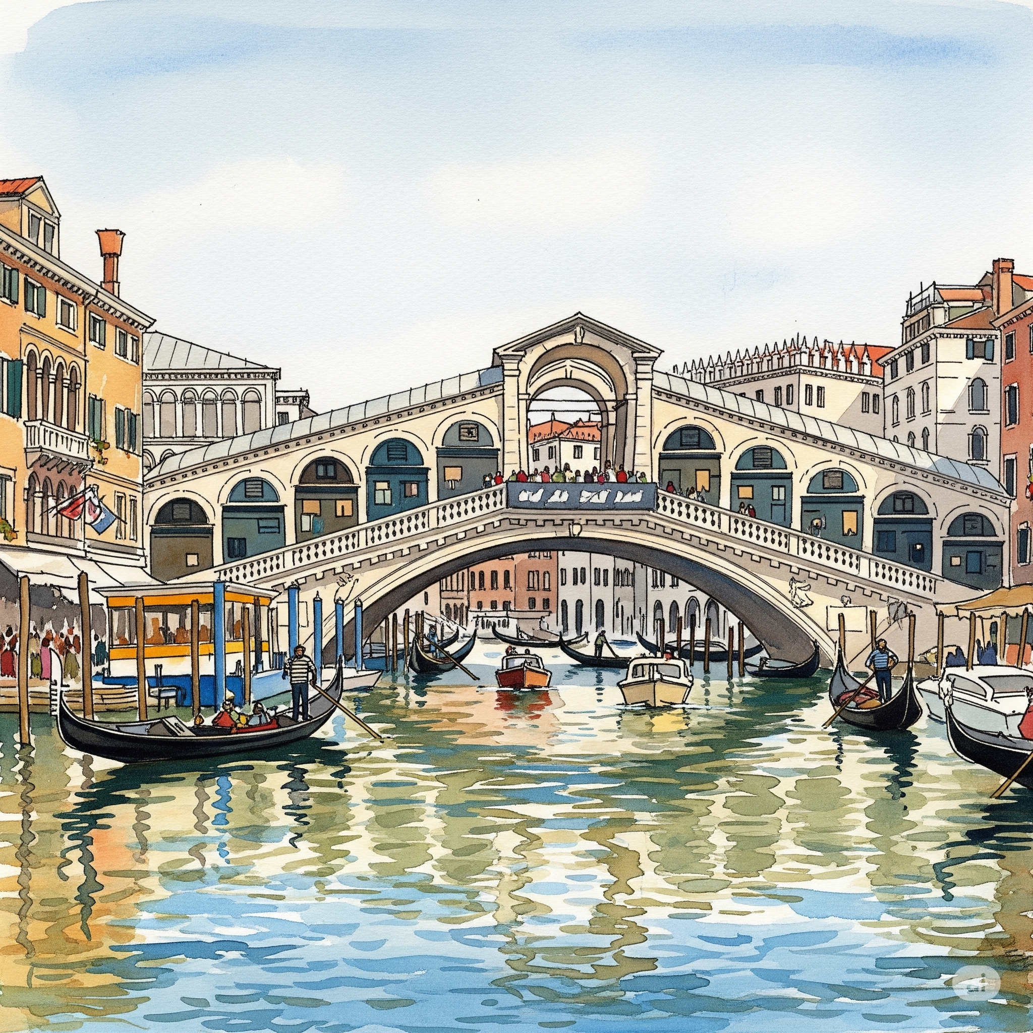 The oldest of Venice’s four Grand Canal bridges, completed in 1591. It was the city’s commercial hub for centuries, and today it bustles with shops and markets.