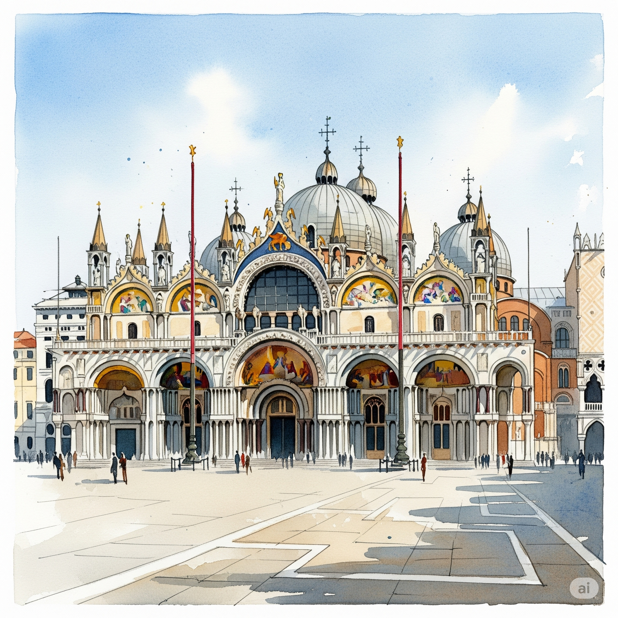 A stunning masterpiece of Byzantine architecture, consecrated in 1094. Its gilded mosaics, five domes, and treasure-filled interior make it Venice’s spiritual heart.