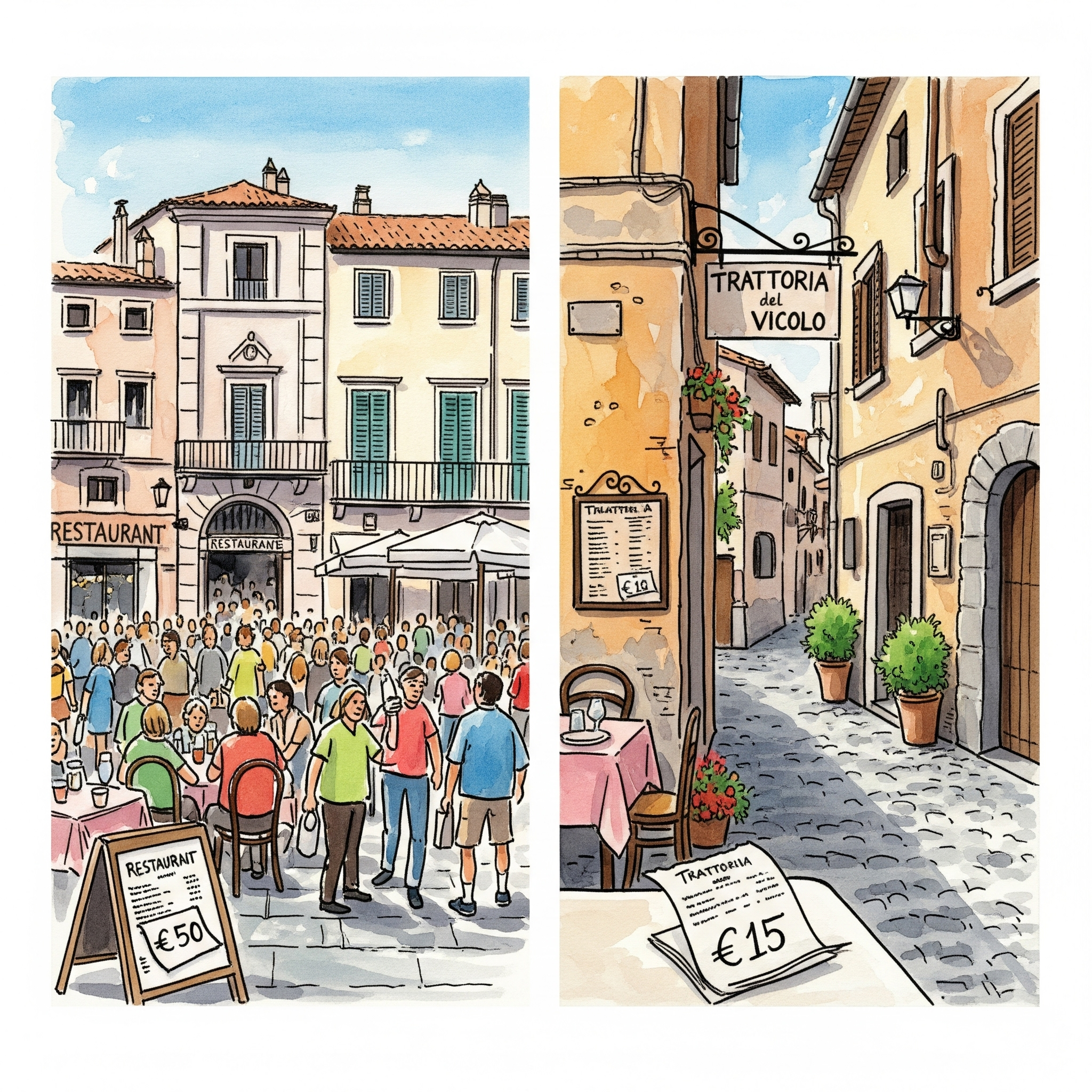 Avoid overpriced tourist traps by dining a little away from main squares.
