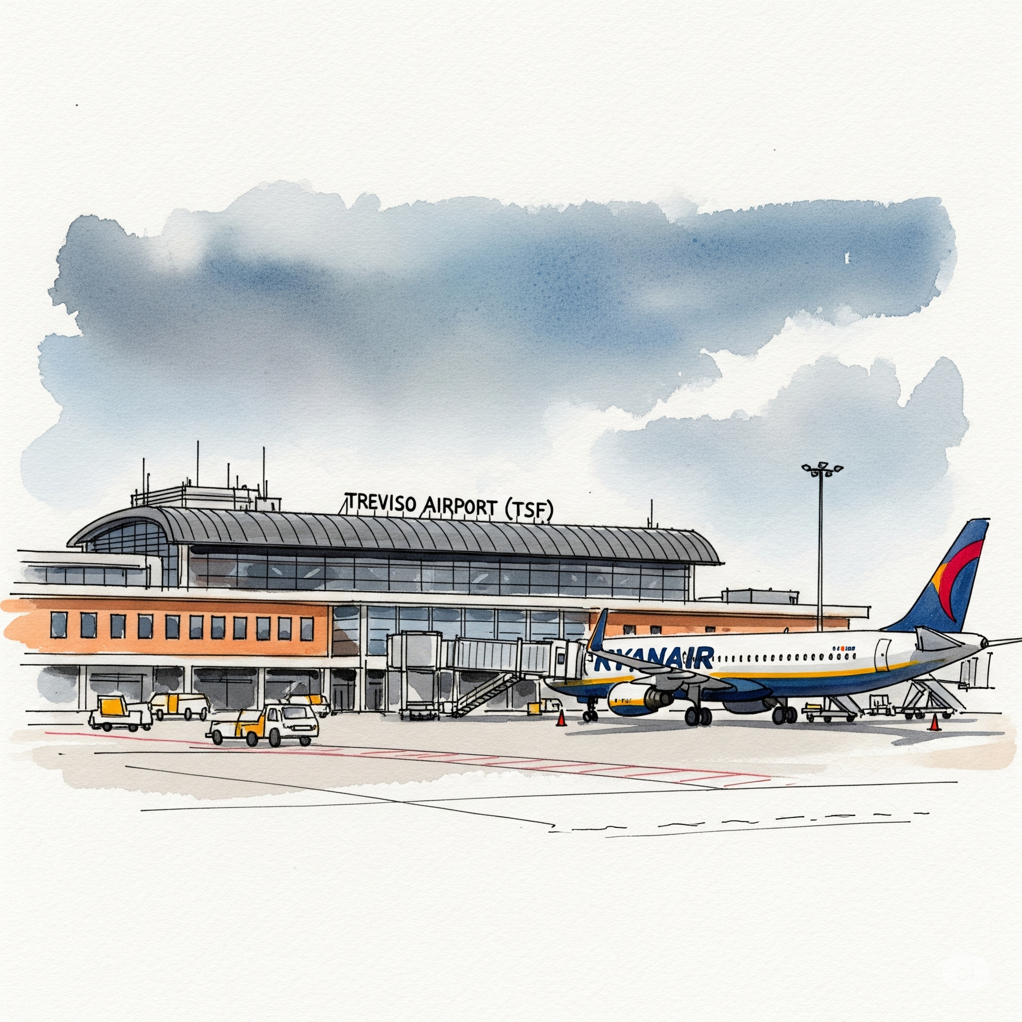 Used by budget airlines, ~1 hour from Venice by bus and train.