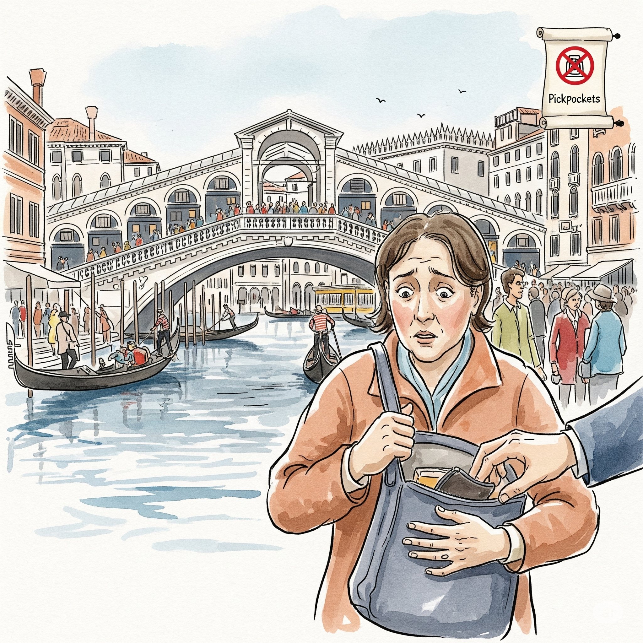 Venice is safe, but crowded areas can attract pickpockets — especially on the Rialto Bridge or Piazza San Marco.